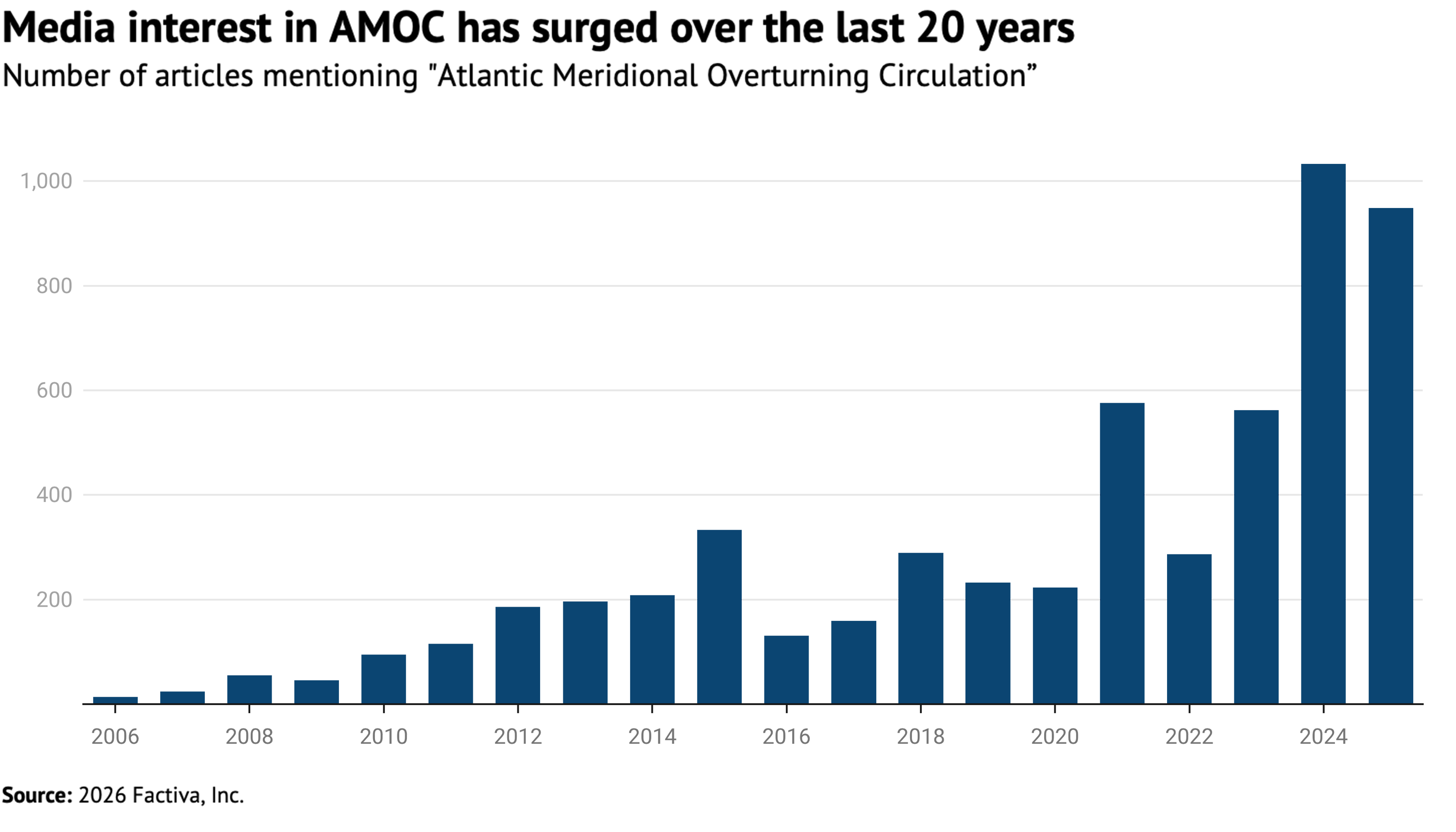 At the same time, climate-sceptic outlets, such as the UK’s Daily Telegraph and Daily Mail, have highlighted scientific uncertainties and debates within AMOC research.